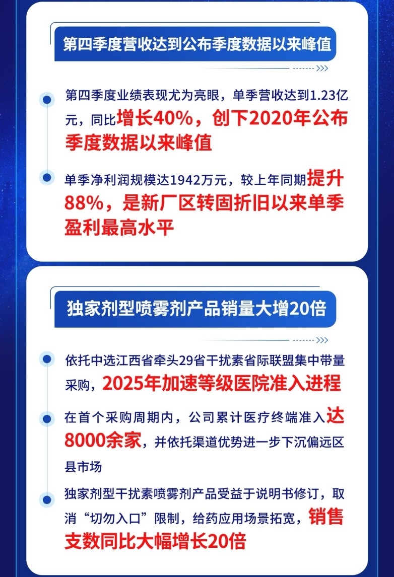 業(yè)績表現(xiàn)背后離不開集采中選優(yōu)勢和市場布局的持續(xù)深化。公司重組人干擾素α1b噴霧劑自2025年8月起銷量快速攀升,全年銷售支數(shù)實(shí)現(xiàn)同比20倍增長,成為驅(qū)動業(yè)績增長的重要引擎。