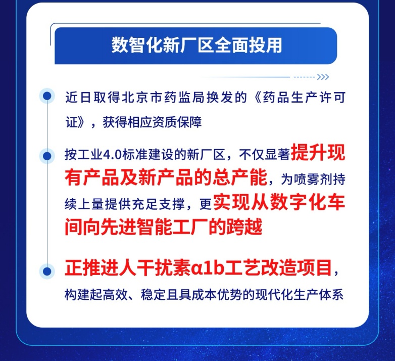 產(chǎn)能升級方面,三元基因數(shù)智化新廠區(qū)全面投用,并于近日取得北京市藥監(jiān)局換發(fā)的《藥品生產(chǎn)許可證》,獲得相應(yīng)資質(zhì)保障。