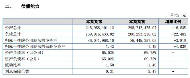 該公司近年來的年報(bào)顯示,2016年的凈資產(chǎn)89,449,257.05元,總資產(chǎn)295,742,475.07元;2017年凈資產(chǎn)86,041,968.10元,245,958,401.12元。