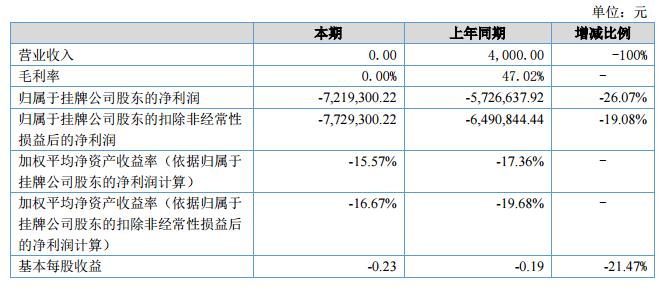 賽諾生物2018上半年?duì)I收0元 凈利-721.93萬(wàn)元