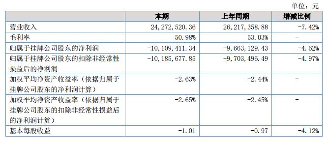 2018年上半年公司總營(yíng)業(yè)收入24,272,520.36元,同比減少7.42%,主要原因是報(bào)告期內(nèi)公司升級(jí)打造親子溫泉,改造期較長(zhǎng),導(dǎo)致客流受限,客房、餐飲、溫泉較上期同期收入減少;歸屬于母公司所有者的凈利潤(rùn)-10,109,411.34元,同比減少4.62%。?