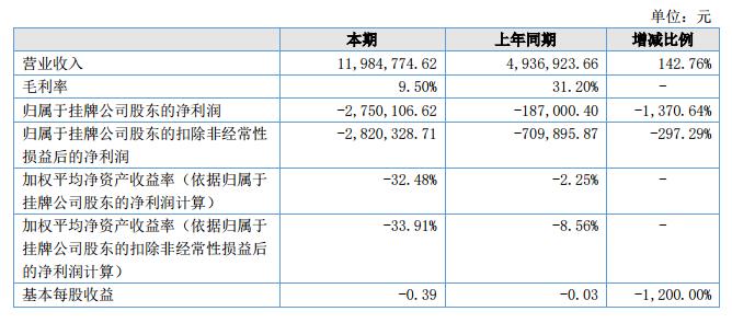 報(bào)告期內(nèi),公司的主營業(yè)務(wù)收入:2016年為1242.13萬元、2017年為1479.70萬元、2018年6月為1198.48萬元,總體上穩(wěn)健走高;受國內(nèi)整體資金面緊張、消費(fèi)指數(shù)下降、居民和企業(yè)需求逐漸下降,自去年年底虧損至今。?