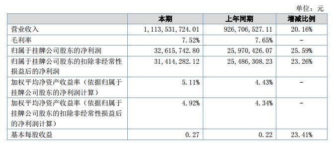 報(bào)告期內(nèi),公司的主營(yíng)業(yè)務(wù)收入為1,113,531,724.01元,比上年同期增長(zhǎng)了20.16%;主營(yíng)業(yè)務(wù)成本為1,029,836,363.23元,比上年同期增加20.33%;歸屬于母公司的凈利潤(rùn)為32,615,742.80元,比上年同期增長(zhǎng)了25.59%。?