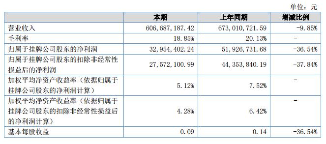 報告期內(nèi)公司實現(xiàn)營業(yè)收入60,668.72萬元,與上年同期相比降低9.85%,歸屬于母公司所有者的凈利潤3295.44萬元,與上年同期相比減少36.54%。?