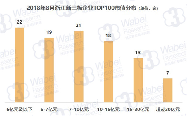 TOP100上榜門檻為5.02億元,其中有7家企業(yè)市值超過30億元,而市值在6億元及以下、6-7億元、7-10億元、10-15億元、15-30億元的企業(yè)分別有22家、19家、21家、18家、13家。