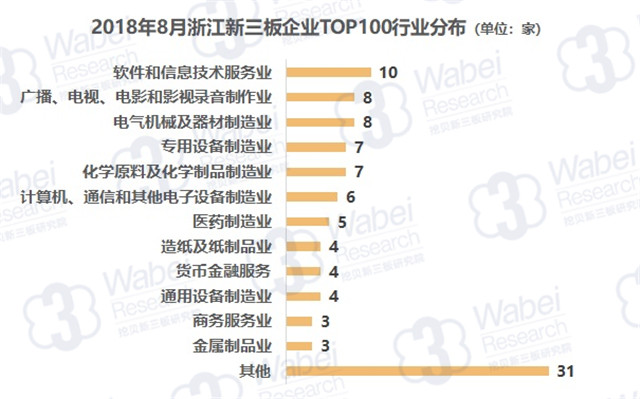 從行業(yè)分布來看,軟件和信息技術(shù)服務(wù)業(yè)企業(yè)數(shù)量最多,有10家企業(yè);其次是廣播、電視、電影和影視錄音制作業(yè)、電氣機(jī)械及器材制造業(yè),均有8家企業(yè);專用設(shè)備制造業(yè)、化學(xué)原料及化學(xué)制品制造業(yè)排名第三,均有7家企業(yè)。(來源:挖貝新三板研究院)