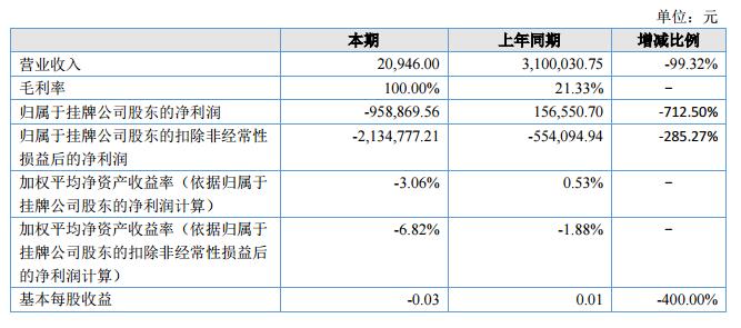 報(bào)告期內(nèi),公司實(shí)現(xiàn)營業(yè)總收入2.09萬元,較上年同期減少99.32%;公司營業(yè)利潤為-111.31萬元,同比減少187.58萬元;利潤總額-111.31萬元,同比減少136.18萬元?。