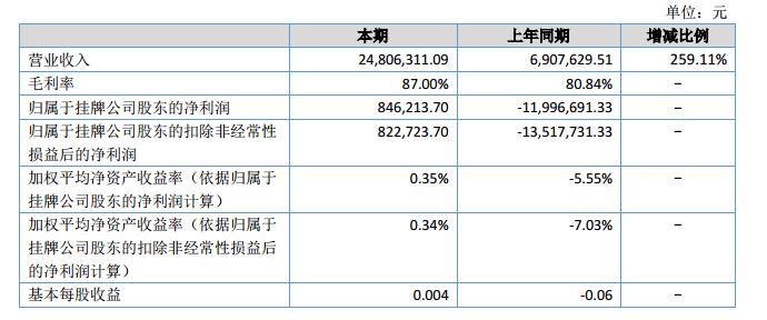 挖貝網(wǎng)9月10日,歐林生物(證券代碼:833577)近日公布的2018年半年報(bào)顯示,截至2018年6月30日,企業(yè)實(shí)現(xiàn)營(yíng)收2480.63萬(wàn)元;歸屬于掛牌公司股東的凈利潤(rùn)為84.62萬(wàn)元。