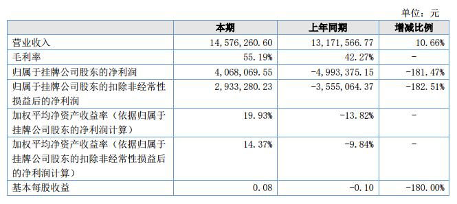 報(bào)告期內(nèi),公司實(shí)現(xiàn)營(yíng)業(yè)收入1,457.63萬(wàn)元,較上年同期增加10.66%,實(shí)現(xiàn)凈利潤(rùn)390.70萬(wàn)元,較上年同期增加171.69%。截至2018年6月30日,公司資產(chǎn)總額9,713.4萬(wàn)元,凈資產(chǎn)2,256.28萬(wàn)元,分別較上年增長(zhǎng)8.96%、20.16%。?