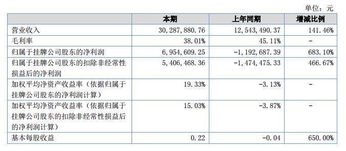挖貝網(wǎng)9月10日,佳明環(huán)保(證券代碼:837547)近日公布的2018年半年報(bào)顯示,截至2018年6月30日,企業(yè)實(shí)現(xiàn)營(yíng)收3028.79萬(wàn)元;歸屬于掛牌公司股東的凈利潤(rùn)為695.46萬(wàn)元。