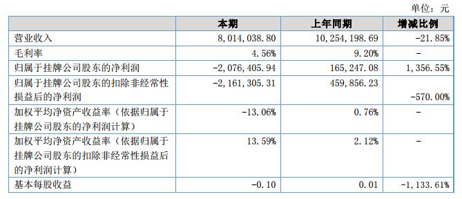 挖貝網(wǎng)9月10日,卓碩電子(證券代碼:870895)近日公布的2018年半年報顯示,截至2018年6月30日,企業(yè)實現(xiàn)營收801.4萬元;歸屬于掛牌公司股東的凈利潤為-207.64萬元。