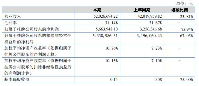 報告期內(nèi)公司在穩(wěn)定老客戶及原有市場的情況下,加強新市場的開發(fā),特別是對國際市場的開發(fā)力度;同時加大研發(fā)力度,提高產(chǎn)品質(zhì)量及產(chǎn)品的性能。2018年上半年公司實現(xiàn)銷售收入52,026,694.22元,同比增長23.81%,實現(xiàn)凈利潤5,663,948.10元。?
