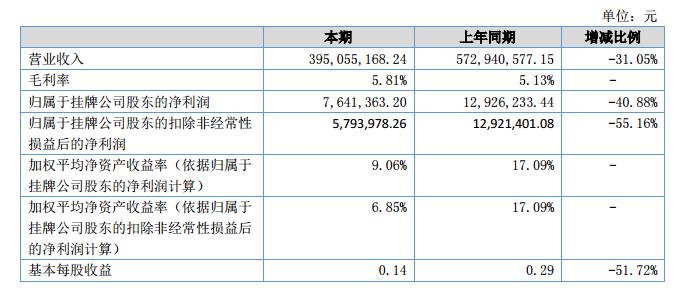 報(bào)告期內(nèi)公司實(shí)現(xiàn)營收3.95億元,比上年同期減少1.78億元,降幅31.05%;凈利潤764萬元,比上年同期減少528萬元,降幅40.88%。?