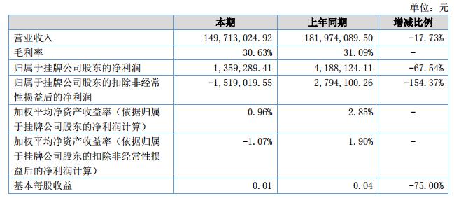 挖貝網(wǎng)9月12日,巨立股份(證券代碼:833481)近日公布的2018年半年報(bào)顯示,截至2018年6月30日,企業(yè)實(shí)現(xiàn)營收1.5億元;歸屬于掛牌公司股東的凈利潤為135.92萬元。