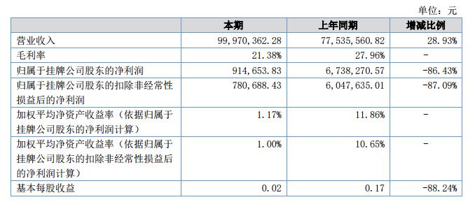 挖貝網(wǎng)9月13日,方圓現(xiàn)代(證券代碼:834381)近日公布的2018年半年報(bào)顯示,截至2018年6月30日,企業(yè)實(shí)現(xiàn)營收9997.04萬元;歸屬于掛牌公司股東的凈利潤為91.46萬元。