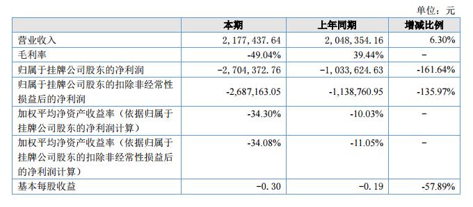 報告期內(nèi),公司總資產(chǎn)1115.30萬元,較期初減少394.25萬元,下降26.12%。主要原因是本期結(jié)轉(zhuǎn)前期預(yù)付賬款、歸還往來款、稅款及計提應(yīng)收賬款壞賬準(zhǔn)備所致。報告期內(nèi)實現(xiàn)營業(yè)收入217.74萬元,較上年同期增加12.91萬元,同比上升6.30%,營業(yè)收入基本穩(wěn)定。報告期內(nèi)發(fā)生主營業(yè)務(wù)成本324.52萬元,較上年同期增加200.46萬元,同比上升161.59%,主要原因是前期預(yù)付項目款的結(jié)轉(zhuǎn)以及人力成本的增加所致。報告期內(nèi)實現(xiàn)歸屬于掛牌公司股東的凈利潤-270.44元,較上年同期減少167.07萬元,同比下降161.64%,主要原因是受主營業(yè)務(wù)成本增加所致。?