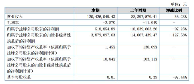挖貝網(wǎng)9月14日,ST國(guó)龍(證券代碼:831366)近日公布的2018年半年報(bào)顯示,截至2018年6月30日,企業(yè)實(shí)現(xiàn)營(yíng)收1.2億元;歸屬于掛牌公司股東的凈利潤(rùn)為51.88萬元。
