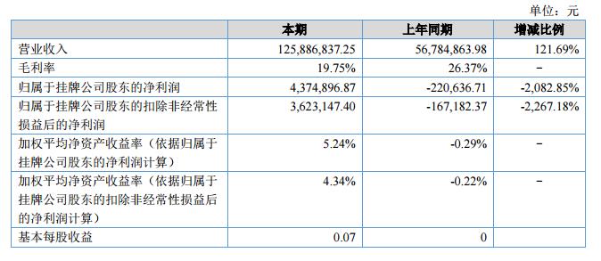 挖貝網(wǎng)9月14日,無(wú)錫鼎邦(證券代碼:872931)近日公布的2018年半年報(bào)顯示,截至2018年6月30日,企業(yè)實(shí)現(xiàn)營(yíng)收1.26億元;歸屬于掛牌公司股東的凈利潤(rùn)為437.48萬(wàn)元。