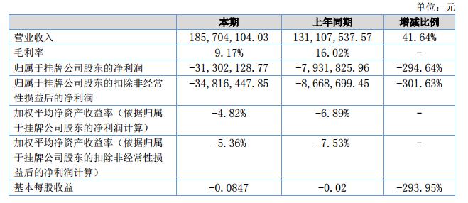 報告期內(nèi),公司圍繞年度經(jīng)營目標和計劃,積極開展各項工作。2018上半年,實現(xiàn)營業(yè)收入18,570.41萬元,較去年同期13,110.75萬元增長了5,459.66萬元,增長率41.64%;凈利潤虧損3,219.51萬元,較去年同期虧損783.62萬元增加虧損2,435.89萬元;實現(xiàn)經(jīng)營性現(xiàn)金流量凈額5,589.83萬元,較去年同期增加2,449.53萬元。報告期內(nèi)產(chǎn)品綜合毛利率9.17%,較同期下降6.85%。?