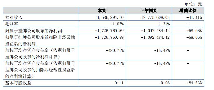 挖貝網9月18日,天行股份(證券代碼:834325)近日公布的2018年半年報顯示,截至2018年6月30日,企業(yè)實現(xiàn)營收1158.63萬元;歸屬于掛牌公司股東的凈利潤為-172.67萬元。