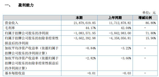 公司 2018 年上半年實(shí)現(xiàn)營業(yè)收入 2187.96 萬元,營業(yè)收入同比增長 86.80%,歸屬于掛牌公司股東的凈利潤同比增長 71.80%。其原因在于道路施工的季節(jié)性特征導(dǎo)致報告期內(nèi)部分施工企業(yè)開工較早,對水泥碎石穩(wěn)定混合料、商品混凝土、水泥制管等產(chǎn)品需求較去年同期有所增加,公司產(chǎn)品營業(yè)收入增長率和凈利潤增長率均大幅度提高。公司主要營業(yè)收入和利潤集中在 4-11 月份,報告期內(nèi)公司凈利潤為-108.36 萬元,主要是受公司季節(jié)性停工影響,停工期間費(fèi)用達(dá) 203.32 萬元等綜合因素導(dǎo)致凈利潤出現(xiàn)負(fù)值。報告期內(nèi)公司負(fù)債同比增長 50.45%,主要原因在于公司備料支出增長及報告期內(nèi)公司員工大幅度增加,應(yīng)付工資上漲。