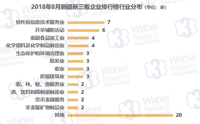 從行業(yè)分布來(lái)看,軟件和信息技術(shù)服務(wù)業(yè)的企業(yè)數(shù)量最多,有7家企業(yè);其次是開(kāi)采輔助活動(dòng),有6家企業(yè)。(來(lái)源:挖貝新三板研究院)