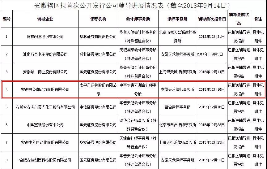 在安徽證監(jiān)局最新發(fā)布的“安徽轄區(qū)擬首次公開(kāi)發(fā)行公司輔導(dǎo)進(jìn)展情況表”中,新三板公司白兔湖(430738,目前證券簡(jiǎn)稱(chēng)為“ST白兔湖”)依然名列其中。
