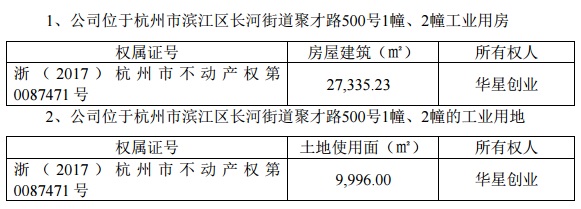 9月28日,華星創(chuàng)業(yè)申請向銀行等融資機(jī)構(gòu)融資不超3億元,再次抵押位于杭州市濱江區(qū)長河街道聚才路500號的自有工業(yè)土地及房產(chǎn),其中,工業(yè)用房的房屋建筑面積為2.73萬平米,工業(yè)用地的土地使用面積為9996平米,共計(jì)3.7萬平米。