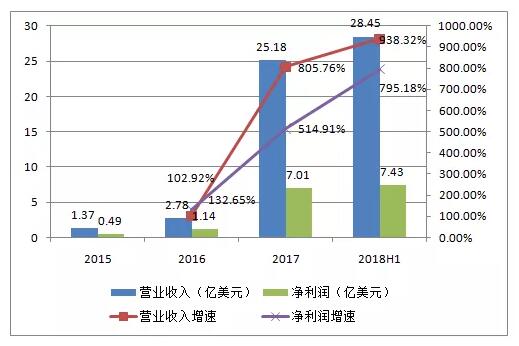 更可怕的是,僅2018年上半年,比特大陸營業(yè)收入就達(dá)到了28.45億美元,同比增長938.32%,近乎10倍,高于2017年全年的收入,凈利潤也達(dá)到了7.43億美元,同比增長795.18%,真是當(dāng)之無愧的吸金王啊。