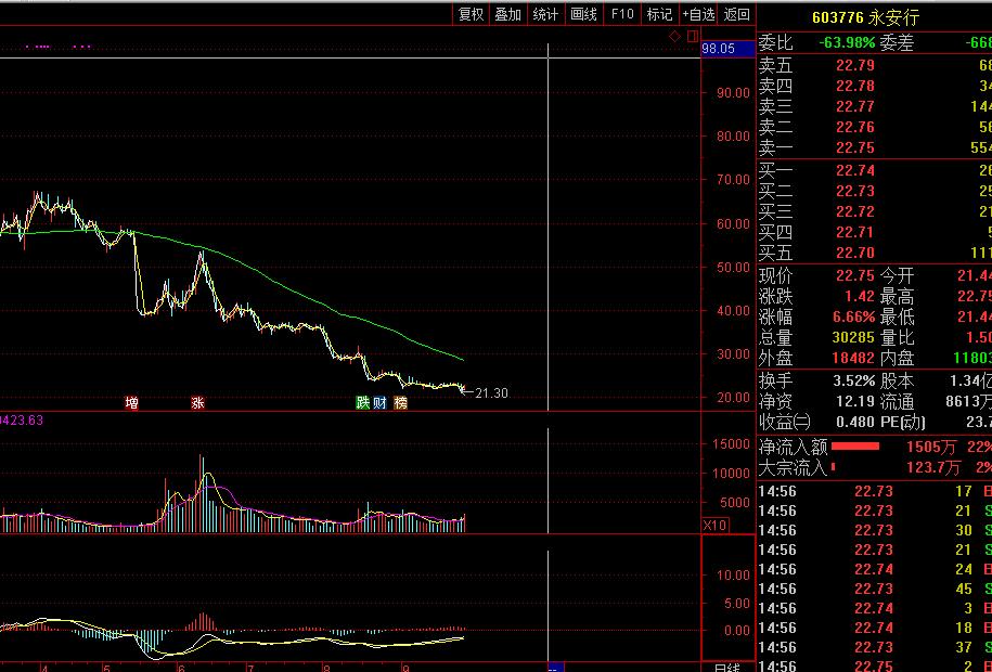 炒股軟件顯示,近半年來,永安行股價已經(jīng)從42元/股附近跌至目前21元/股附近。6月份股價在50元/股附近,成交量放大。