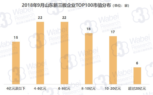 TOP100上榜門檻為3.46億元,其中有6家企業(yè)市值超過20億元,而市值在4億元及以下、4-6億元、6-8億元、8-10億元、10-20億元的企業(yè)分別有15家、22家、22家、18家、17家。