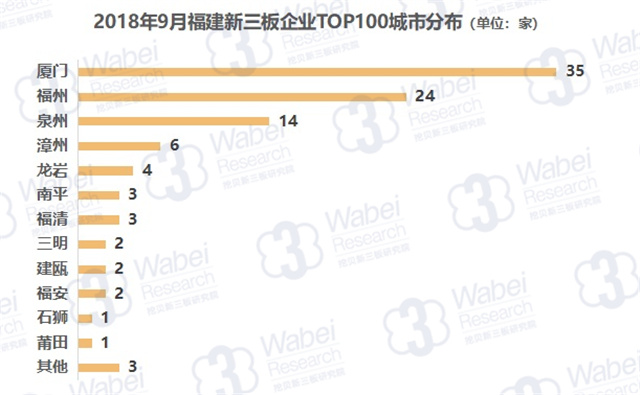 截止到2018年9月30日,新三板共有10946家掛牌公司,福建有378家新三板企業(yè),占比3.4%;其中257家企業(yè)有市值,占比68.0%。