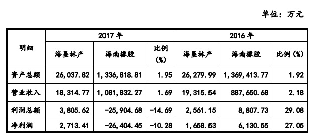 2016年、2017年海墾林產(chǎn)對海南橡膠的業(yè)績貢獻(xiàn)明細(xì)(挖貝網(wǎng)wabei.cn配圖)