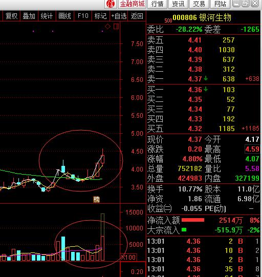 挖貝網(wǎng)訊 10月11日消息,受到隔夜美股暴跌4%的負(fù)面影響,今日A股市場(chǎng)低開(kāi)低走,截止今日上午收盤(pán),上證指數(shù)下跌4.34%,跌破2638點(diǎn)的前期低點(diǎn)。盤(pán)面上,跌停個(gè)股一度接近300只,跌幅超過(guò)9%的股票達(dá)到630只,而僅有67只個(gè)股飄紅,其中30只個(gè)股漲幅超過(guò)3%。銀河生物(000806.SZ)公告重大利好消息,受到資金關(guān)注,盤(pán)中一度觸及漲停,上午收盤(pán)有所回落,收漲3.6%,觀察發(fā)現(xiàn),銀河生物最近幾個(gè)交易日出現(xiàn)逆勢(shì)放量大漲,近期漲幅一度超過(guò)20%,而同期大盤(pán)下跌超過(guò)7%,顯示出投資者對(duì)公司未來(lái)發(fā)展的信心,有望繼續(xù)獲得資金關(guān)注。