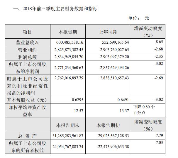 挖貝網(wǎng) 10月12日消息,川投能源(600674)發(fā)布2018年前三季度業(yè)績(jī)預(yù)告,營(yíng)業(yè)總收入6億元,同比增長(zhǎng)8.65%。利潤(rùn)27.7億元,同比下降3.02%。