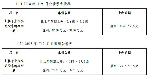 前三季度盈利預(yù)計(jì)在8600萬(wàn)元–9000萬(wàn)元之間,同比增長(zhǎng)0.66% - 5.34%,去年同期為8543.92萬(wàn)元。