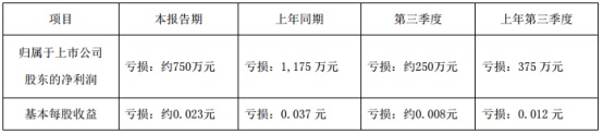 公司表示,前三季度凈利潤虧損金額較去年同期有減少,主要是因為去年公司持有交易性金融資產的公允價值變動所致。