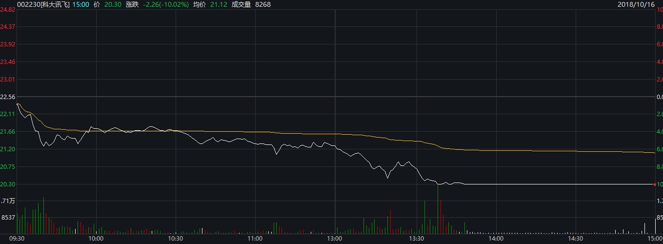 今日,處在輿論風(fēng)口浪尖上的A股上市公司科大訊飛(002230)收獲近期第二個跌停板,距離其上一個跌停,僅過去了兩個交易日。