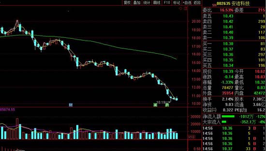 從安潔科技近期股價走勢來看,17.55元的減持價,算是比較高的。炒股軟件顯示,7月16日,安潔科技股價一直在19元/股附近徘徊,7月25日還曾經(jīng)創(chuàng)下短期20.16元/股的新高,之后一路下滑,截止到10月16日收盤,股價幾乎腰斬,股價僅為10.39元/股。