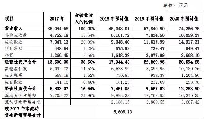 ▲新安潔預(yù)測(cè)2018至2020年流動(dòng)資金占用情況