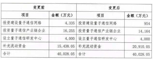 ▲九州量子計(jì)劃變更募資情況