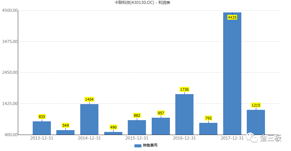 雖然業(yè)績連續(xù)虧損,但卡聯(lián)科技的銷售費用卻居高不下。以2017年為例,基本上是“1塊錢銷售費用換回3塊錢收入”。