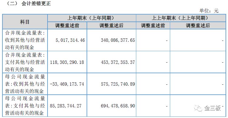 而對于更正原因,只說了一句,“上年度未按貨幣資金發(fā)生額編制,而采用貨幣資金凈額編制。”