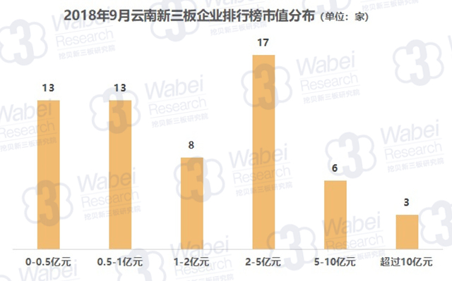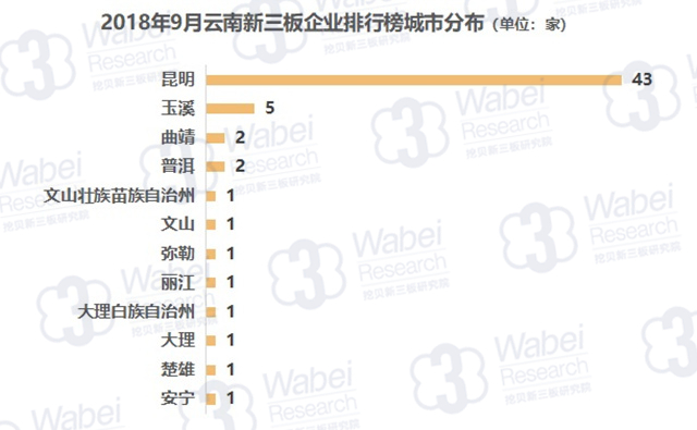 截止到2018年9月30日,新三板共有10946家掛牌公司,云南有95家新三板企業(yè),占比0.9%;其中60家企業(yè)有市值,占比63.2%。