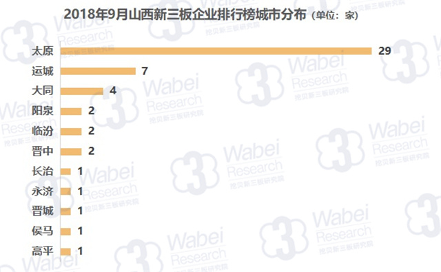 截止到2018年9月30日,新三板共有10946家掛牌公司,山西有88家新三板企業(yè),占比0.8%;其中51家企業(yè)有市值,占比58%。