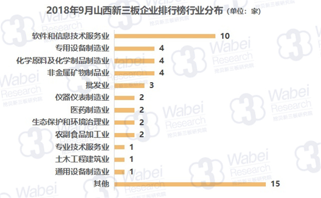 從行業(yè)分布來看,軟件和信息技術(shù)服務(wù)業(yè)上榜企業(yè)數(shù)量最多,有10家企業(yè);其次是專用設(shè)備制造業(yè)、化學(xué)原料及化學(xué)制品制造業(yè)、非金屬礦物制品業(yè),均有4家企業(yè)。(來源:挖貝新三板研究院)