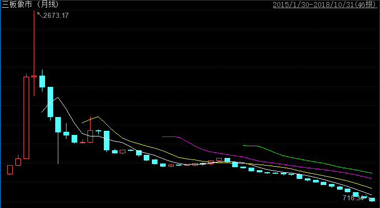 這是三板做市指數(shù)(899002)的月K線,10月結(jié)束,已經(jīng)連續(xù)19根陰線。上一次,我們看到做市指數(shù)單月上漲,還是遙遠的2017年3月。