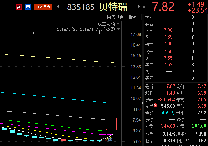 我認為這兩天的上漲,和掛牌企業(yè)三季報是密切相關(guān)的。舉個例子,貝特瑞(835185.OC)過去一年里,股價從22元一路殺回不到6元,可最近兩天就反彈了50%。