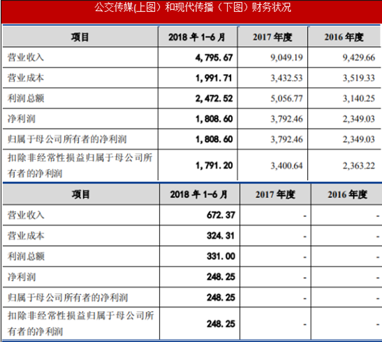 此外,從報告書來看此次業(yè)績承諾內(nèi)容為公交傳媒扣除非經(jīng)常性損益后歸屬于母公司所有者的凈利潤:2018 年不低于 4,305.98 萬元、2019 年不低于 5,363.63 萬元、2020 年不低于 6,530.14 萬元;現(xiàn)代傳播扣除非經(jīng)常性損益后歸屬于母公司所有者的凈利潤:2018 年不低于733.58 萬元、2019 年不低于 1,351.72 萬元、2020 年不低于 1,828.05 萬元。