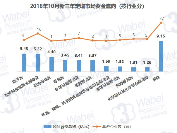 上月,新三板定增市場(chǎng)上,吸引資金最多的行業(yè)是批發(fā)業(yè),共募資5.43億元;其次是軟件和信息技術(shù)服務(wù)業(yè),募資5.32億元。